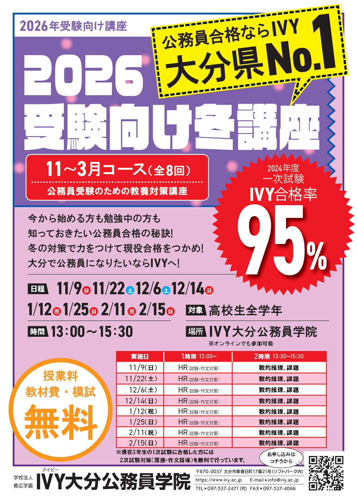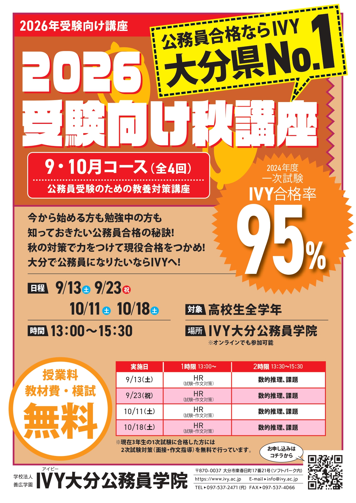 IVYでは、高校現役で公務員合格を目指すための特別講座をご用意しています。